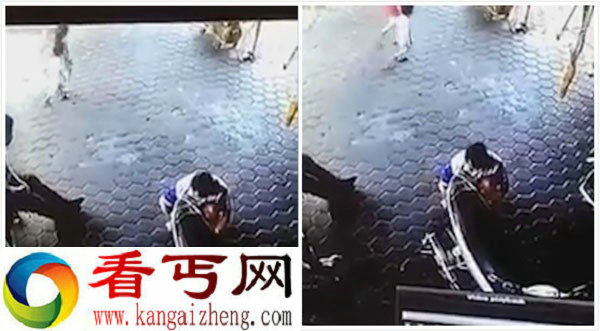 事情发生在印度尼西亚占碑市的一家汽车修理铺。当时,这位技工爸爸正背对着两个孩子修理摩托车。当这两个孩子横过人行道时,他仿佛有心电感应般突然回头看了孩子们一眼,正好发现了一辆失控的蓝色汽车向孩子们驶来。