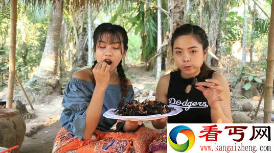 在视频中,两名柬埔寨女子为我们展示了如何将一盆黑色狼蛛油炸成一种酥脆的下午零食,并且姐妹俩还对着镜头,把酒言欢,吃的个不亦乐乎,场面看起来极其酸爽,让人欲罢不能!