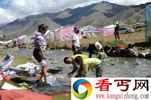 此时高原雨季刚过,风和日丽,阳光灿烂,勤劳质朴的藏族同胞成群结队,阖家而出,扶老携幼,纷纷前往河水之滨,白天洗衣物,等夜晚弃山星高悬头顶之时,就尽情地嬉水游泳,洗刷一年的风尘。