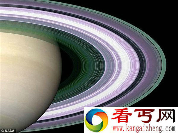 图中的土星环结构是由不同尺寸颗粒构成,图中不同色彩代表着不同颗粒尺寸,绿色是最小的颗粒。目前,科学家最新研究表明,土星环中冰晶和岩石分布结构是颗粒反复碰撞分离形成的,多数构成颗粒直径小于1米,较大尺寸的颗粒非常少。