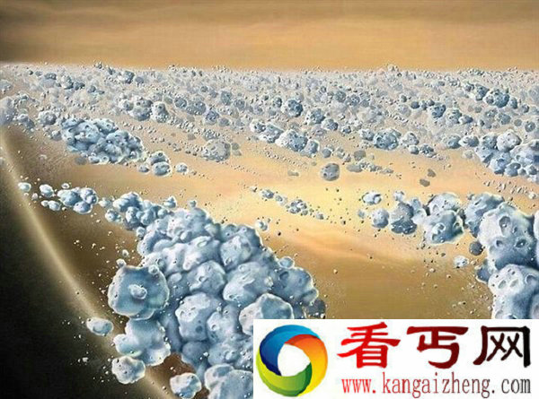 这是艺术家描绘近距离土星环结构,它们被认为是小行星、彗星和卫星分解残骸物质结合在一起,这些残骸颗粒不断地碰撞和分离,最终堆积在一起形成环状结构。