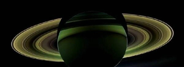 如图所示,这是卡西尼探测器拍摄的土星环,图中拍摄角度朝向太阳,土星处于太阳的背景光之中。