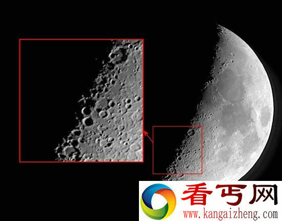 在这张月亮影像裡的醒目X形标记,透过双筒望远镜或小望远镜就轻易得见。,真的见过它的人并不多。其中的困难之处是这道X形标记稍纵即逝,只有在上弦月之前数小时才会现身。